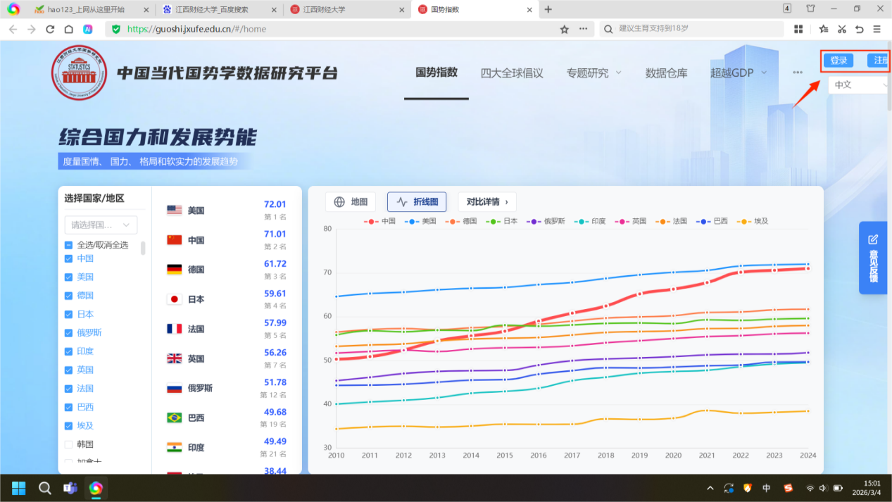 在浏览器中打开平台网址:https://guoshi.jxufe.edu.cn